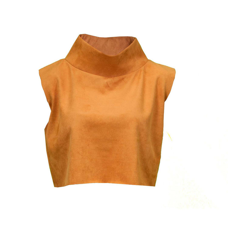 Cropped tank top in suede. Its good to combine with high waisted bottoms.